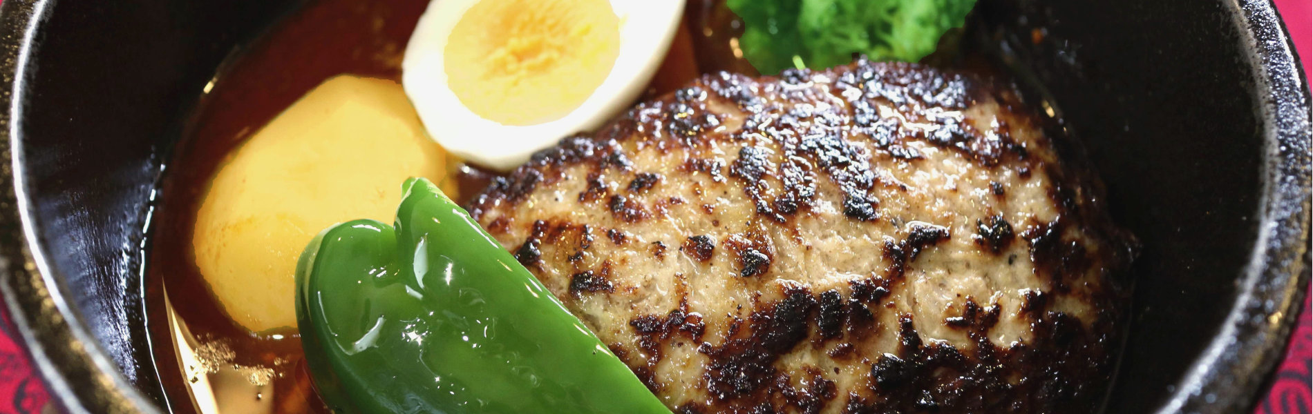 香りを引き出すためにスパイスをじっくり炒めてつくった香味スパイススープと低温熟成スープとのダブルスープです。
